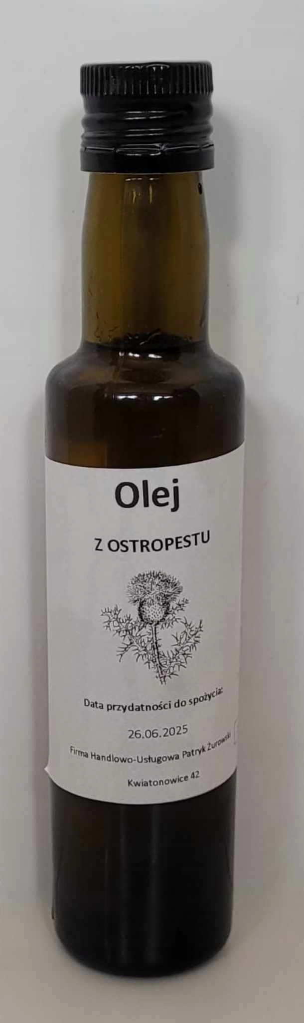 Olej z ostropestu uzyskuje się poprzez tłocznie na zimno nasion ostropestu. Stanowi on cenne źródło kwasów tłuszczowych Omega- 3. Stosowanie oleju zaleca się osobom dorosłym w celu uzupełnienia diety w wielonienasycone kwasy tłuszczowe. Olej z nasion ostropestu stanowi doskonały dodatek do sałatek, surówek, oraz innych dań podawanych na zimno. Olej zaleca się stosować 2 razy dziennie po jednej łyżeczce. Nie należy przekraczać zalecanej porcji w ciągu dnia. Suplementy diety nie mogą być stosowane jako substytut (zamienniki)zróżnicowanej diety. Produkt nie może być stosowany przez osoby uczulone na którykolwiek z jego składników. Po otwarciu przechowywać w temperaturze 4 – 10 st.C nie dłużej niż 3 – 4 tygodnie.